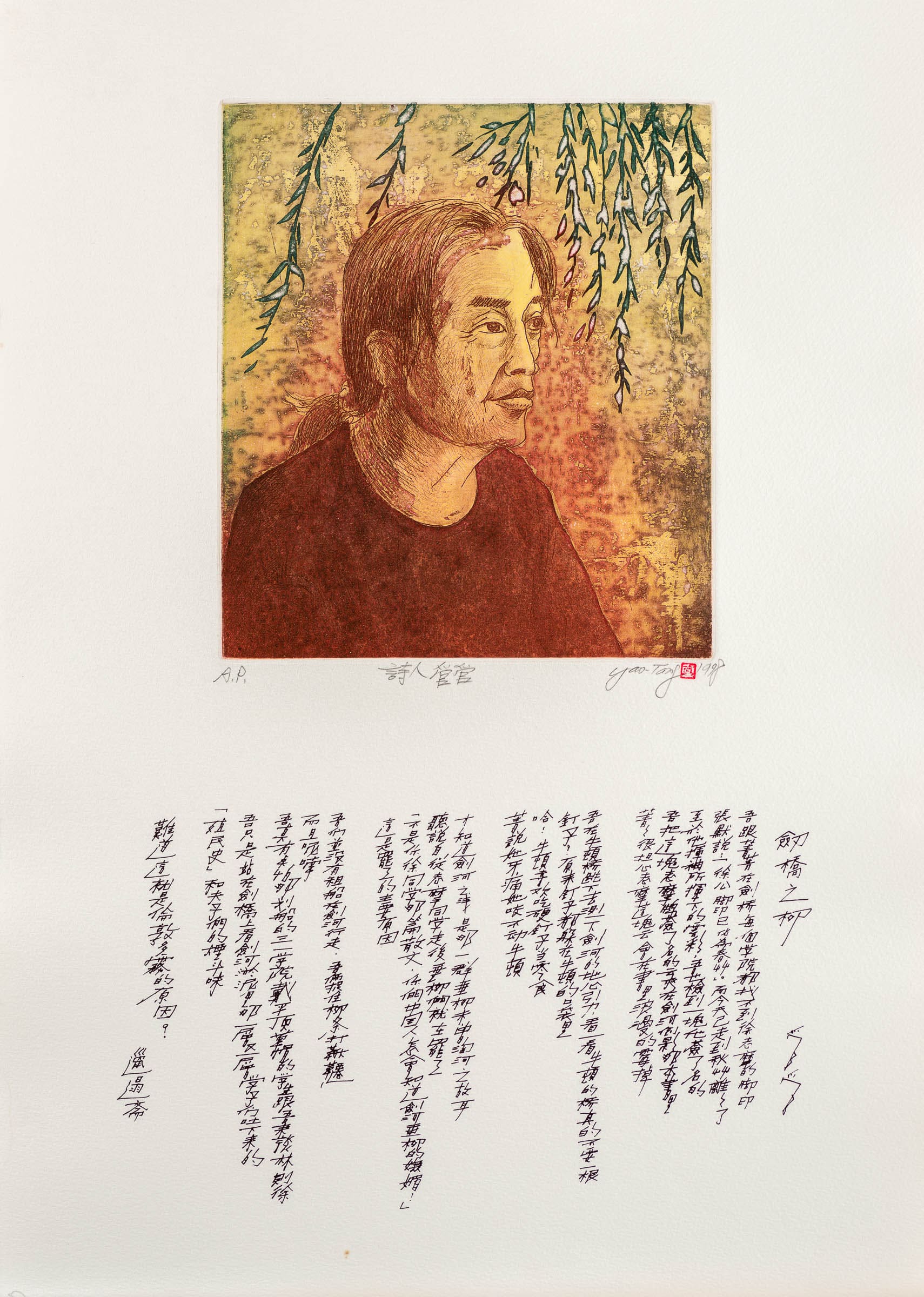 林耀堂創作體現出對詩人的欣賞。內文為詩人管管的詩作〈劍橋之柳〉。