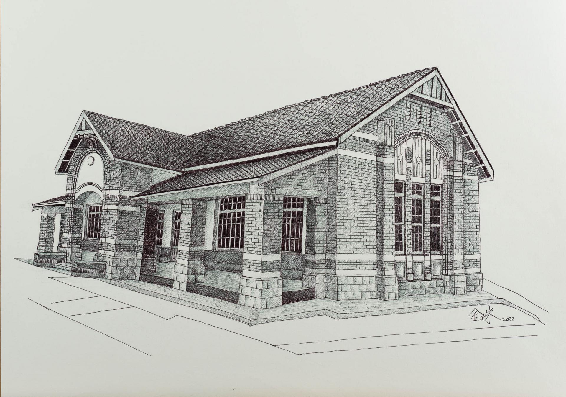翁金珠的鋼筆畫,將老建築的精神與當代連結。