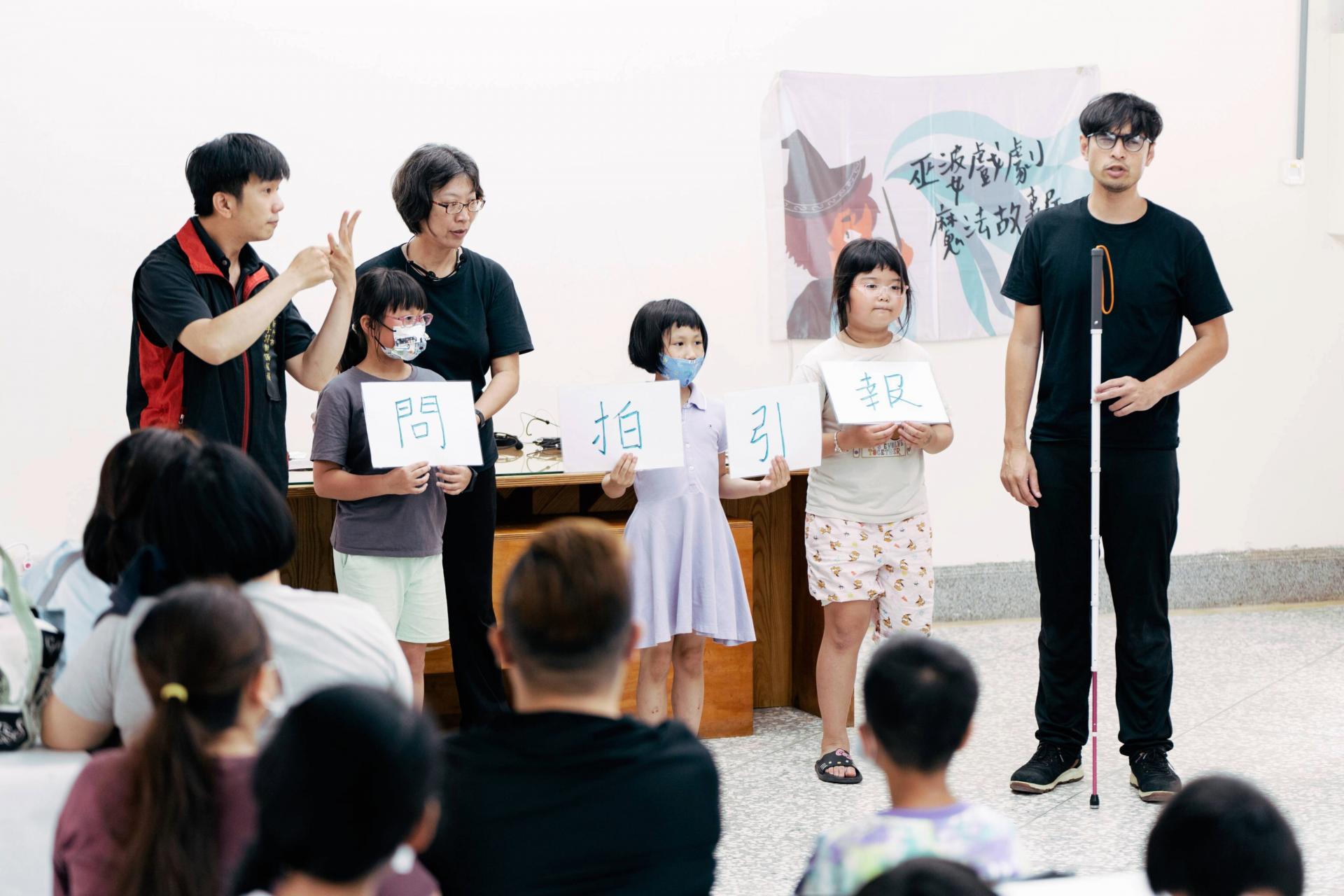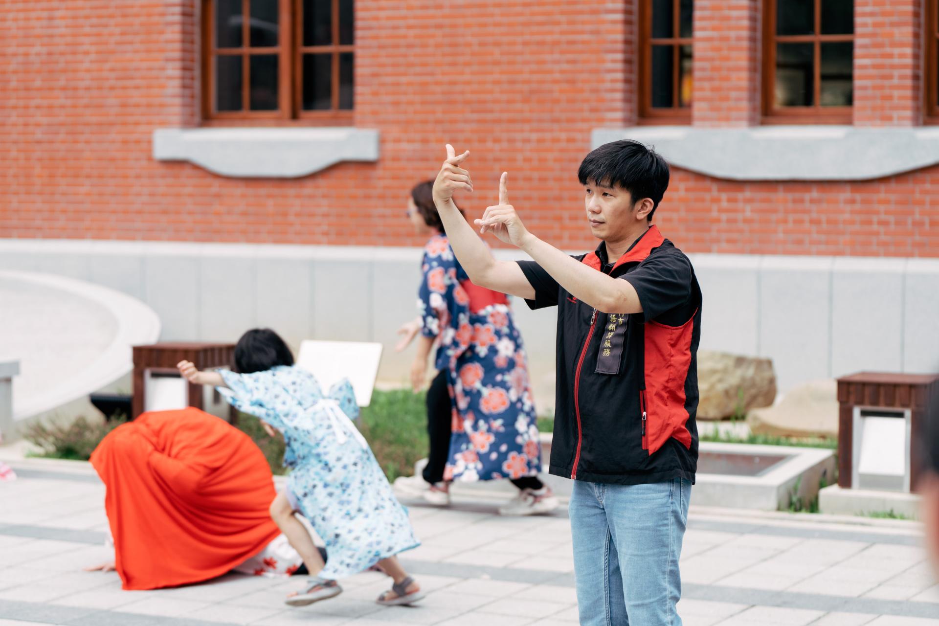 「明盲共遊 Rock EYE 你遊」共同創辦人郭育廷分享,明眼人往往因為擔心風險與意外,抑或不熟悉與視障朋友的互動模式,慢慢地拉開與盲友的距離,久而久之,兩個群體便以最保守的方式相處。然而兩者之間應該建立更深入、雙向的了解,才能跨越志工、慈善、服務等預設,創造更加對等的關係。系列活動中的重要關鍵字「明盲共遊」,目的是讓明與盲在自然的互動中更加認識彼此、落實平權。郭育廷期待明盲透過玩樂熟悉雙方的語言及文化、產生新的化學反應,讓互動生活化。巫婆戲劇魔法故事屋負責人巫素琪借用此概念,並將活動區分為「視障者的文化推廣」與「公會堂導覽」兩部分。在前者中,除了人導法、「問、拍、引、報」的盲友互動口訣、「閉眼開車」體驗外,巫素琪還設計口述舊照片、觸摸情緒雕像等環節,讓明盲相互配合。明眼人與視障者組成隊伍,由明眼人擔任團體的眼睛,透過口述傳遞資訊,而視障者則成為手和腳,引領明眼用新的方式去體驗五感。這樣的分組,能訓練明眼者的口述能力、也能引導視障者在腦海中投射自己的想像,不僅確立了互動模式,同時也能深刻地領會公會堂的歷史進程。而後再以小組口述照片、觸摸雕像的結果為依歸,以共融劇場與論壇劇場的方式進行古蹟導覽,跳脫傳統的解說,邀請民眾一同討論對議題的想法。