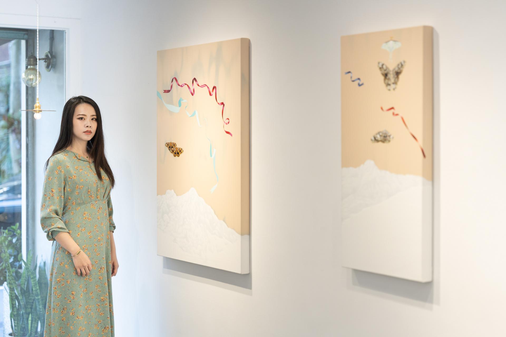 藝術家徐夢涵與作品《Ours》及《Ours 003》合影。