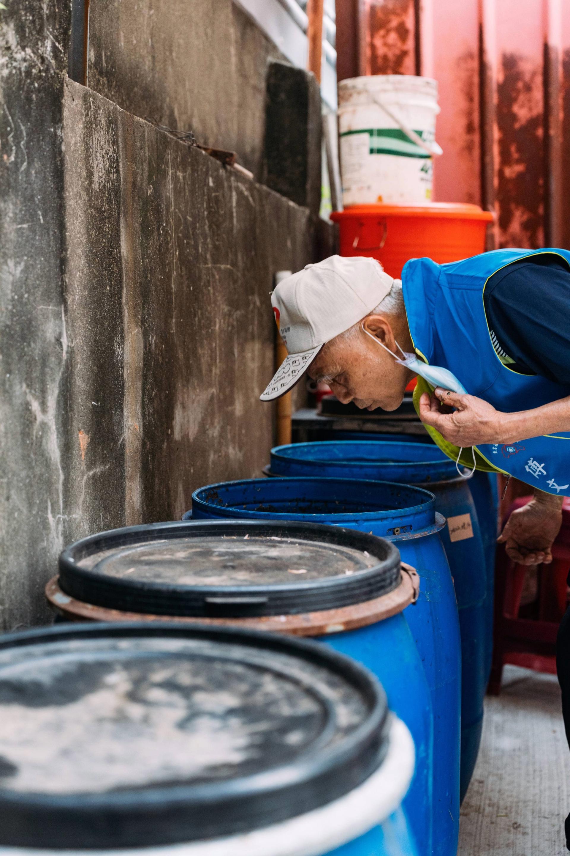 民富社區的里民各個身懷絕技,里長也巧妙地穿針引線,讓里民朋友的不同專業被大家看見。民富社區文化推廣據點每週固定舉行共餐活動,持續關心自然生態、環保理念的里民傅文燦引入「環保酵素」處理廚餘問題。傅文燦熟練地將葉菜、莖梗與水果皮等廚餘切成小塊,倒入調配好的溶劑中,累積足夠的廚餘之後,只要關緊桶子靜待三個月,等待菌種生成,再進行過濾,環保酵素就完成了。傅文燦分享,經過多次實驗,發現環保酵素的用途多元,可以倒入據點後方的水溝,解決油汙堆積而產生的臭味,又或是灌溉民富花園的花花草草,讓土地更肥沃。