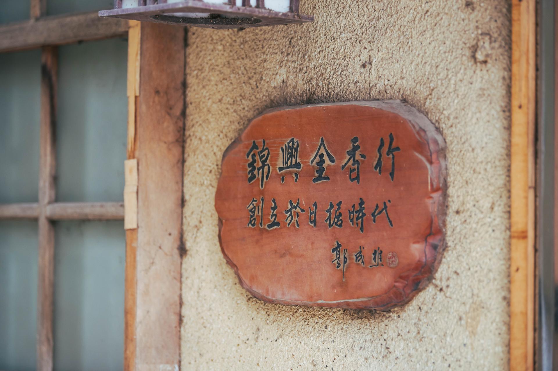 一旁「錦興金香行」匾額文字出自郭成樵之手。