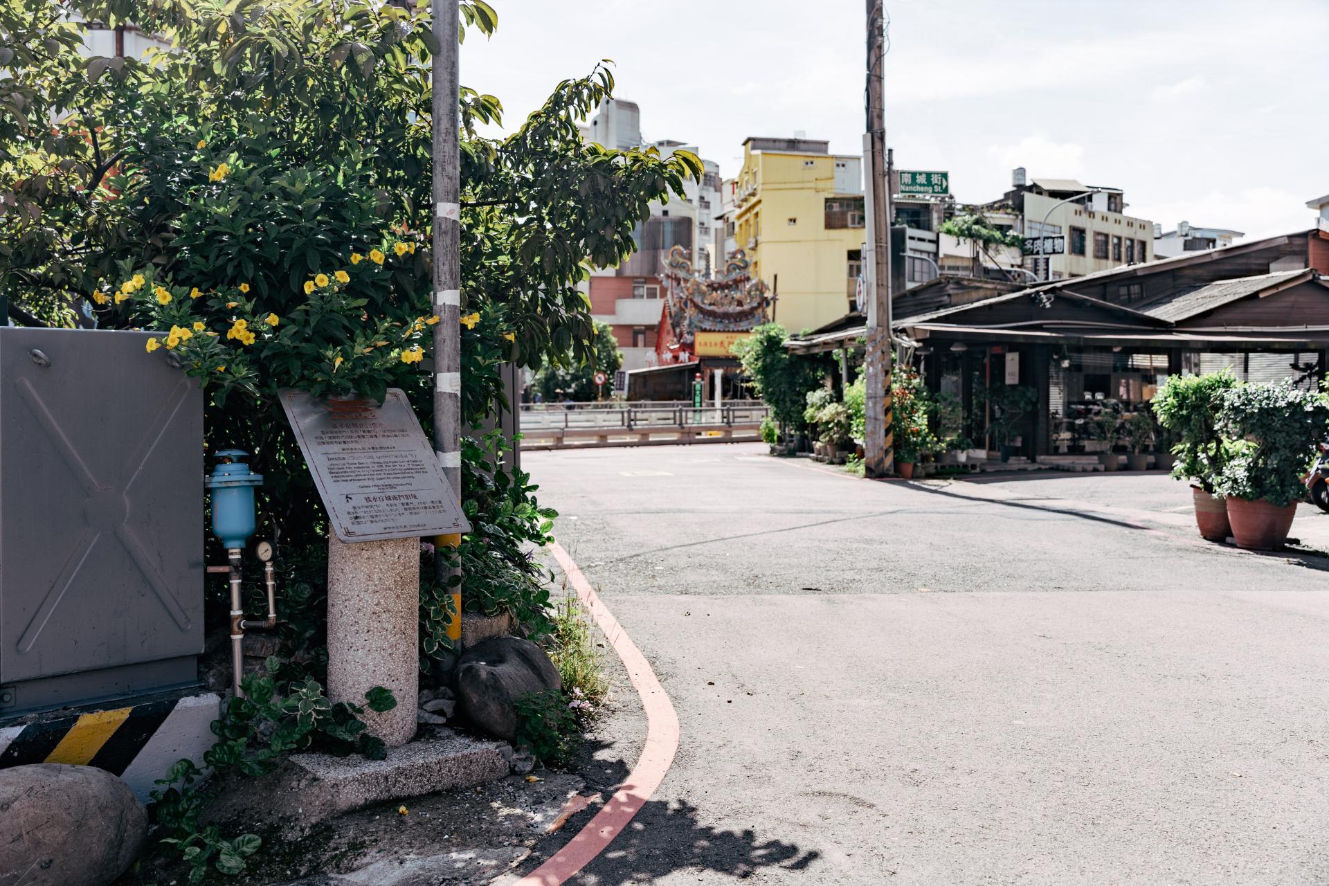 後來隨著政治中心逐漸移至臺北,加上政權轉移,磚石城的風華逐漸黯淡。日治時期明治 34 年(西元 1901 年),北門街金德美商號的大火延燒至北門,導致拱辰門全毀;隔年日本政府施行的市區街道改正計畫中,南門、西門與日漸傾頹的城垣,也在都市擴張的過程中被全數拆除,僅存東門城屹立於舊城中央。據傳,因東門「曦」字與日本國旗中央的太陽意象不謀而合,因而日本政府選擇保留此門。儘管現今僅剩一處城門供人緬懷,但以東門圓環為起點,漫步於蜿蜒的城牆路上,我們仍能隨著約 200 年前的先民腳步,在林森路口和中山路的交界處,遇見南門舊址與西門舊址,細細體會城牆遺跡留下的歷史韻味。