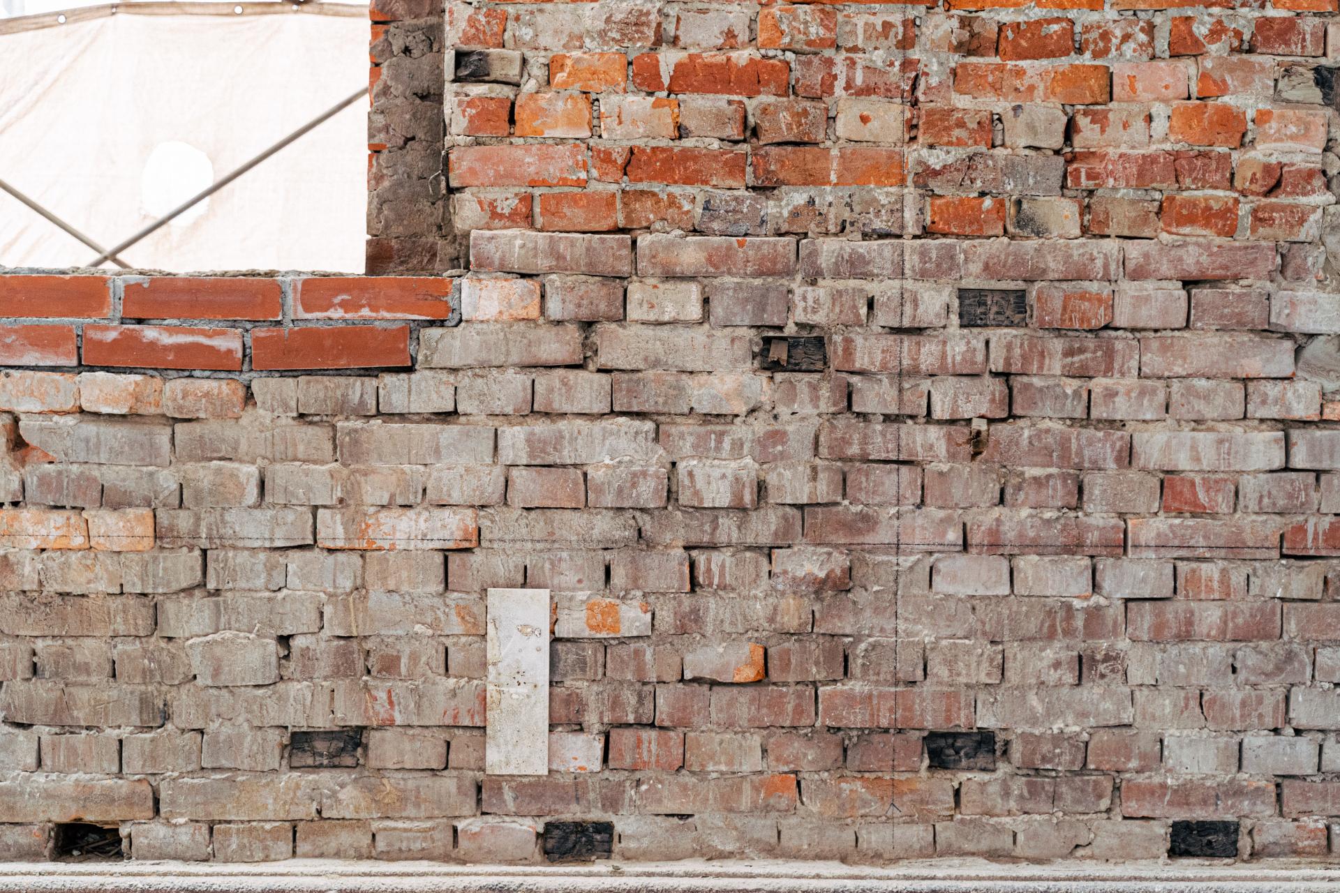 除去羽目板後,發現磚牆內部的木磚因空襲因素已成焦炭。