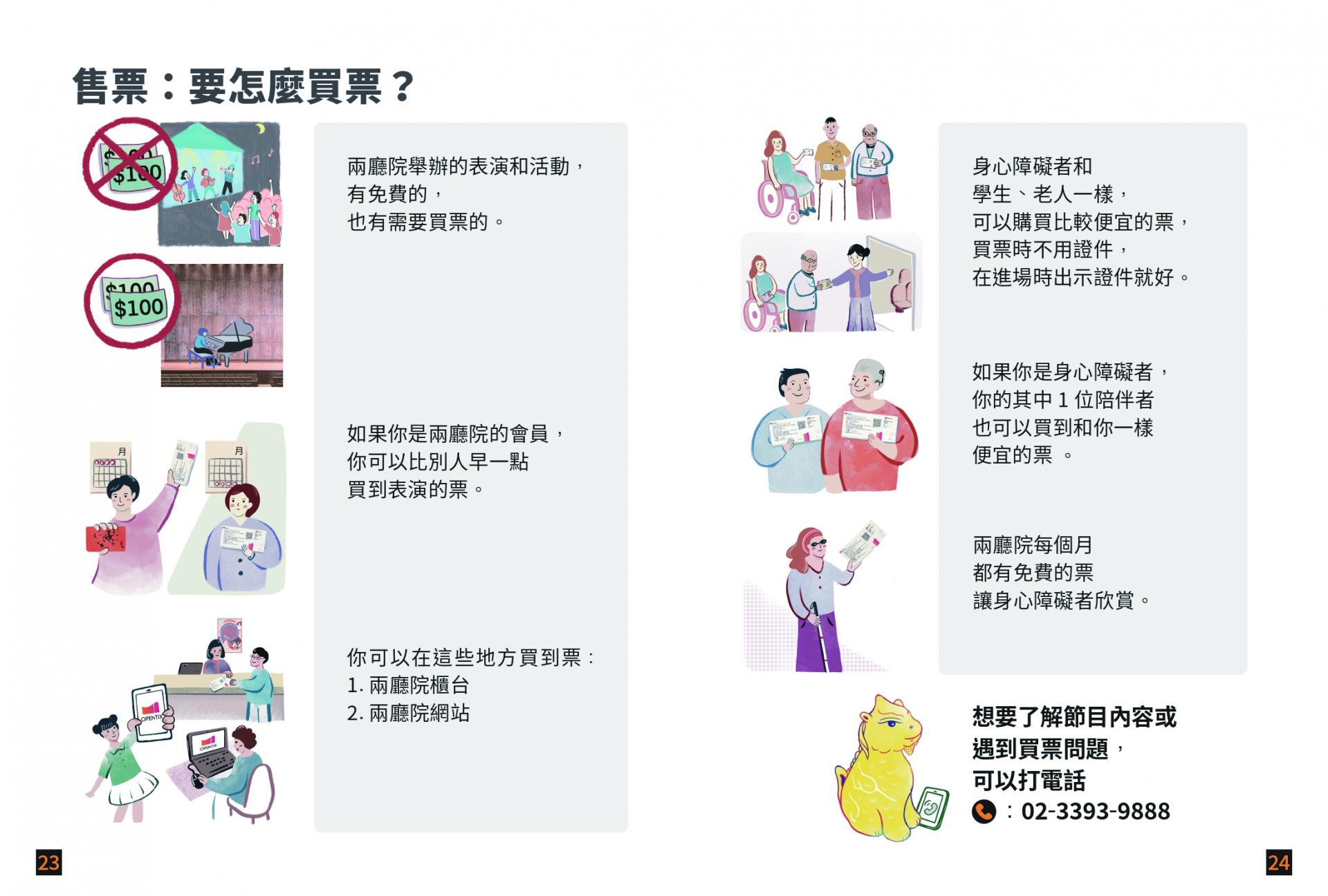 兩廳院與三明治工合作推出的易讀本,過程中也邀請閱讀障礙者擔任顧問。一般人以為圖片色彩越繽紛越好,但其實太過豐富的色彩對某些群體來說,也是一種障礙。因此在設計共融服務時,需要深入了解服務使用者的需求,方可達到真正的幫助。