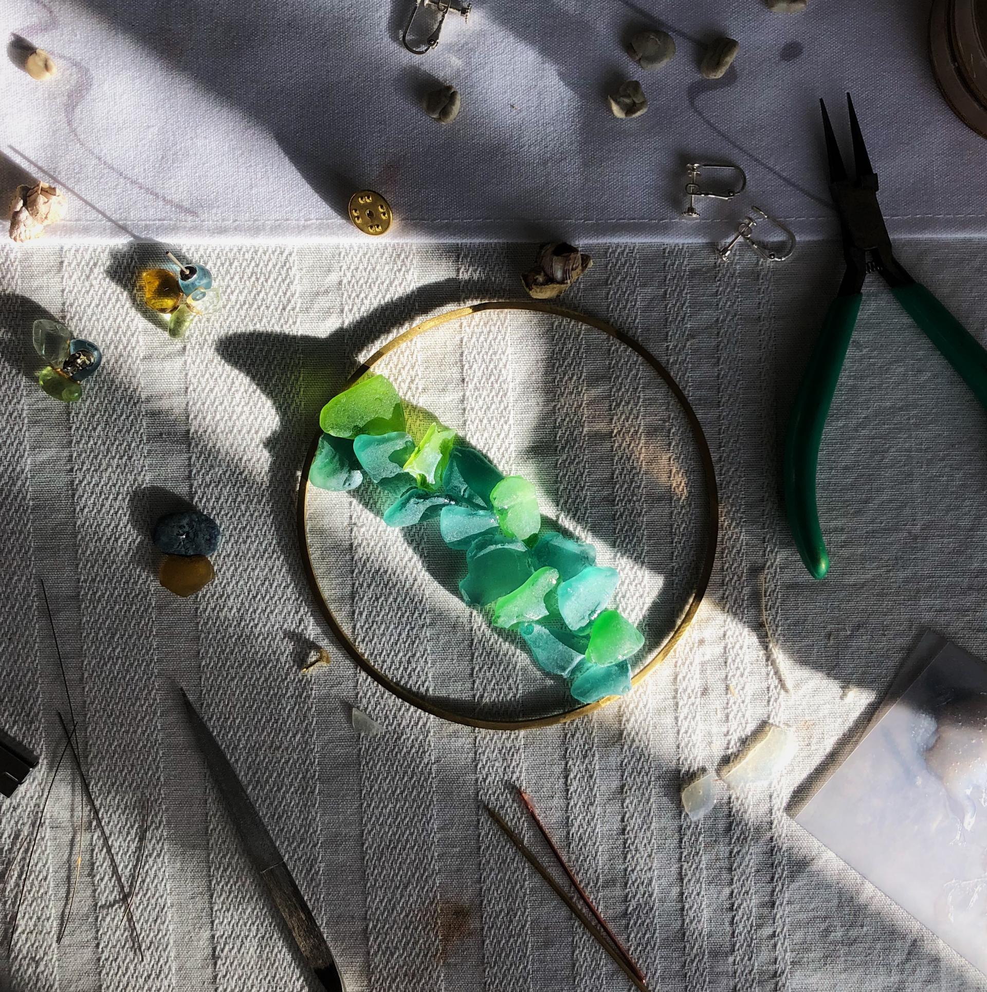 經過兩年的交集,苑茹如觀察觀光復興與藝術創生雙線發展下的馬祖,是一座充滿可塑性的島嶼。在此展開的創作計畫,亦提升她投入海玻璃創作的信心,未來她將以「再生玻璃」的概念為軸,試著將場域從海拉到城市,延伸探討城市空間的廢棄玻璃議題。此外,體認到國內海玻璃創作形式尚侷限於編織首飾創作;相對於歐美將海玻璃與貴金屬結合的商品頗具市場性,臺灣大眾對於回收材質首飾的接受度,亦還有成長空間,苑茹因此積極參與市集與大眾溝通,並開發拼貼畫、金繼或玻璃加工等工作坊,提供民眾接近海玻璃創作的學習管道。「首飾不僅是裝飾身體的物品,也是傳遞訊息的載體。當我們戴在身上,它就像一個小小提醒,讓我們思考海玻璃從何而來。」金工創作者倪苑茹走進國之北境,應用工藝與設計的力量,將海洋廢棄物化作閃爍寶石,打開海廢創作的想像,並將持續以首飾為海洋發聲。