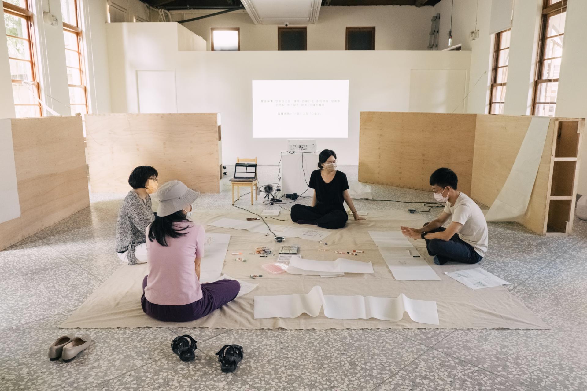 參與者席地而坐,由藝術家張君慈帶領學員進行聲音探索與冥想練習,打開對於「聲音」的敏銳度。