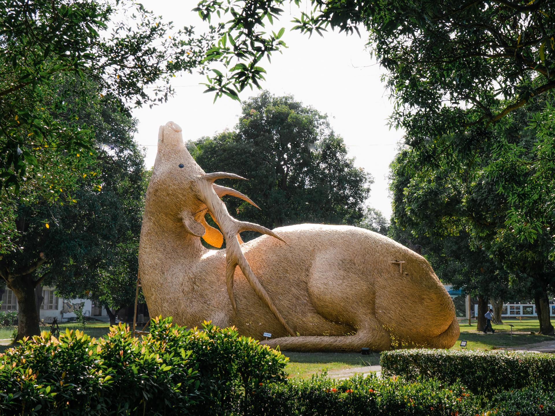 2022 Mattauw 大地藝術季透過「竹、影、植、聲、土、農、水、原、小」等九個倡議子計畫,激發人們跳脫人類 中心主義,重新思考人與水文流域的共存狀態。圖為竹材計畫中由劉哲安創作的《 Ka mawaxa ta teni 醒祂:你的 鹿/我的路 》,以將甦醒的梅花鹿造型,呼應曾文溪流經的嘉南平原上,曾遭受滅絕命運但仍有一絲希望的平埔 族及梅花鹿的相似命運。(圖片來源/2022 Mattauw 大地藝術季)