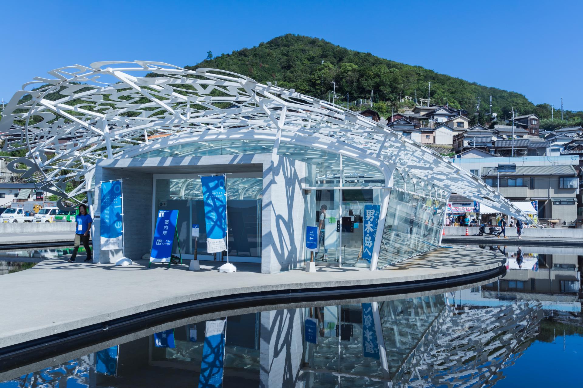 男木島第一地標《男木島之魂》由西班牙藝術家Jaume Plensa創作,該地也作為藝術祭進行時接待旅人的場 所。Jaume Plensa認為人們生活過的印記就像是透明的墨水永久地刻在每個人身上,因此用了不同的語言與字 母搭建出簍空的屋頂,民眾進入作品就像是到皮膚底層。陽光灑落也會創造出趣味的光影變化。(圖片來源/ Shutterstock,攝影:gniyoug)
