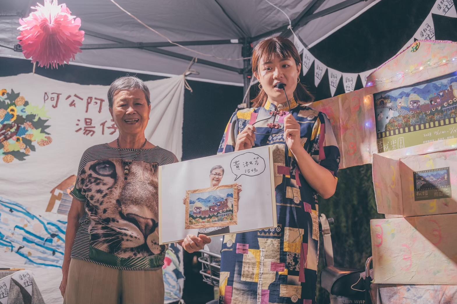 帶著社區長輩共創的布畫,和淑芳阿媽一起在公園說礁溪的故事給大家聽的行動故事車計畫。(攝影/李一品)