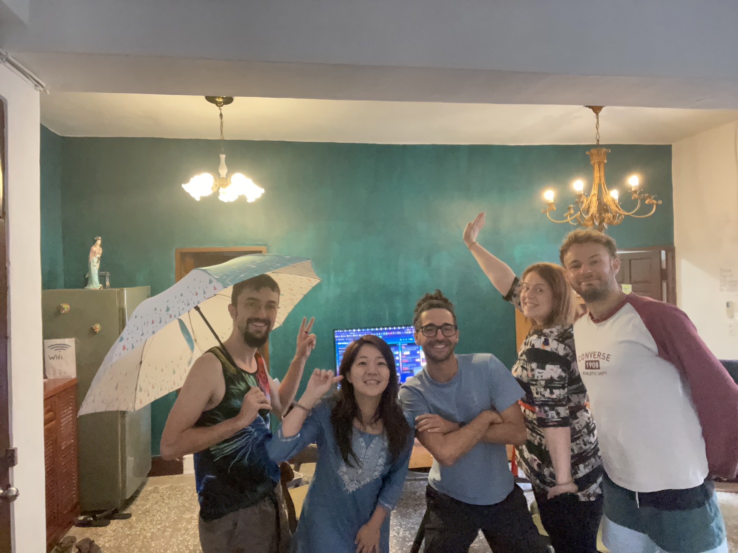 雨都漫步近年開始經營實體空間,營運「返潮基地」,也嘗試媒合在地空間與想進駐基隆的個人或工作團隊。返潮基地成立的目的是提供一個居住與工作的空間,讓進駐者藉由地方創生或藝術創作的方式成為當地的風景。以藝術創作為例,有人選擇創作紀錄片,有人製作互動裝置,有人到惠隆市場進行彩繪。「我們現在其實已經佔據了三面牆了」,筱嵐笑著分享。來到返潮基地的旅人,也包含來自國外的旅客。他們或許不太會說中文,但是在雨都漫步團隊的引領之下,也都順利進入社區,與當地人產生連結。筱嵐以市場牆面彩繪作為例子,「或許繪畫的人他不太會講中文,但是在繪畫過程當中,就會一直有隔壁的雜貨店老闆娘啊,或者是市場裡面的店家會跟他打招呼,來說他很棒啊!」儘管語言不通,但是外國訪客與當地居民之間的交流,也讓他們感受到基隆人的熱情與溫暖,並且回饋在團隊粉絲專頁的換宿者心得中。