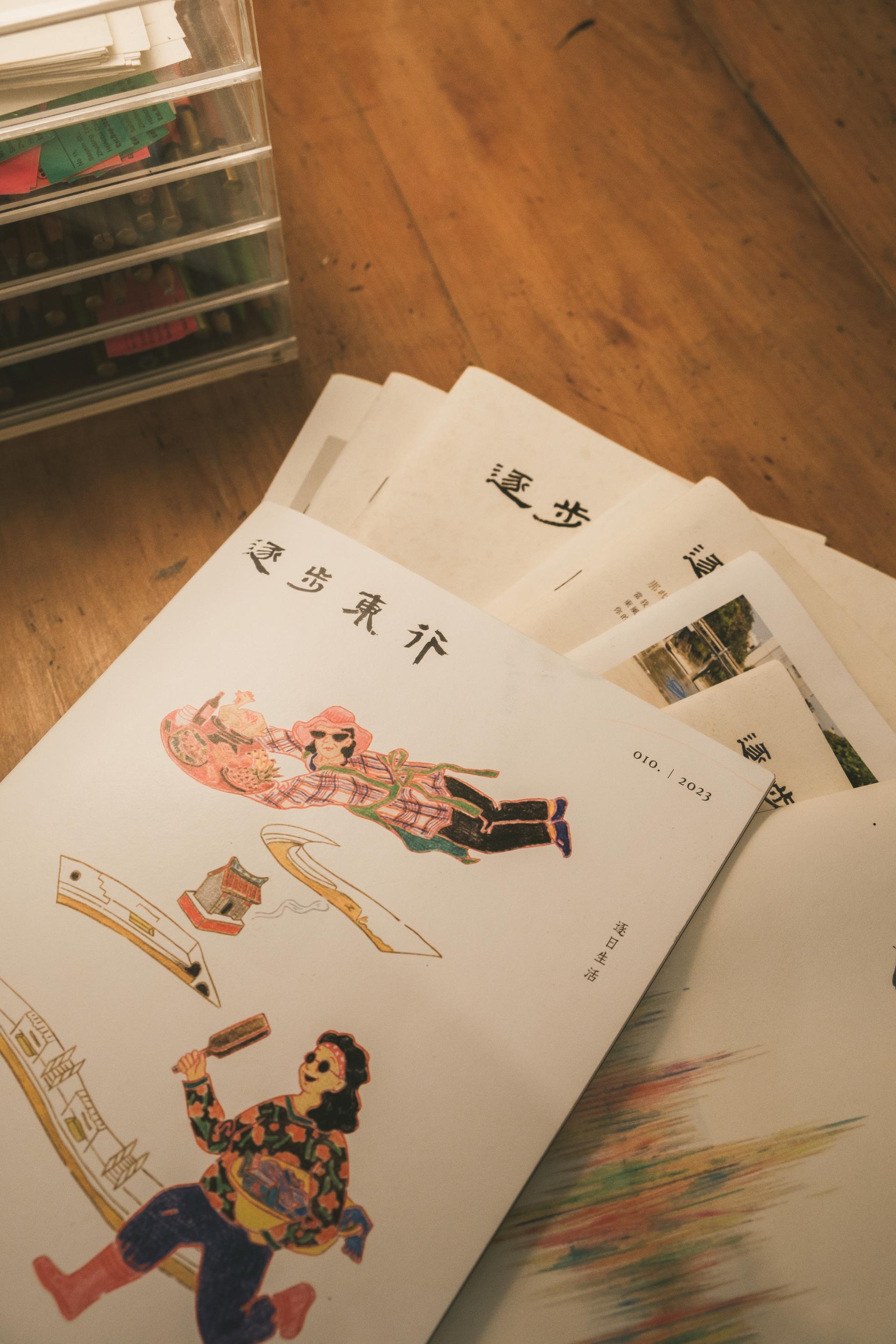 《逐步東行》一期期的發行,團隊逐漸成長茁壯,改變也隨之而來。「我覺得最大改變是讓我們知道這些平常習慣的事物並不是理所當然,是土地孕育著我們,讓我們成為現在的自己。」溫昕分享道。從國中便加入編輯團隊,現在的他已是大學生,同時也擔任《逐步東行》主編,一路走來,曾經對竹東毫無認識的他,如今談起家鄉竹東,總能侃侃而談,眼神裡滿是驕傲。「因為做了刊物,我發現就算我只是國中生也能有影響力,也能被大家看見,對自己更有自信。」還在就讀竹東國中的副主編陳靜璇緊接著說。大家努力捕捉竹東的耀眼之處,梳理出自己和家鄉的關係,以國中生的視角重新詮釋,不只讓《逐步東行》長出自己獨特的樣貌,也讓青少年長出對家鄉的認同感,知道自己來自哪裡,長大的步伐更加堅定踏實。這幾年,團隊增設了工作室「逐步品室」,由過去也曾參與刊物製作的趙佑瑜主要負責經營,讓更多可能在此發生,也開始舉辦編採營,畢業的學長姊會在暑假時回到竹東國中,帶領學弟妹們一同進行田野調查和指導創作。