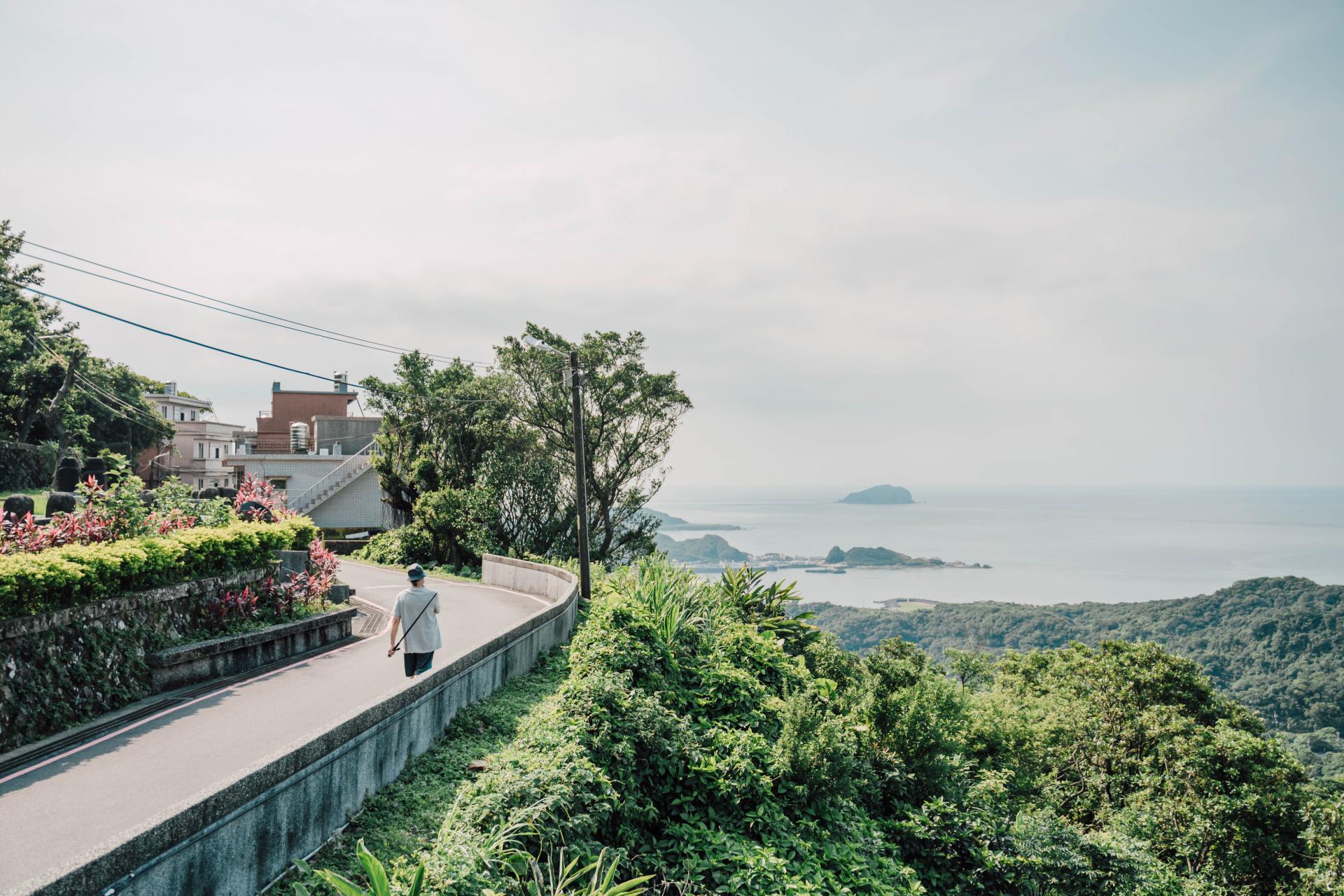 九份山海相依,沿著山城道路行走,海色不時映入眼簾。