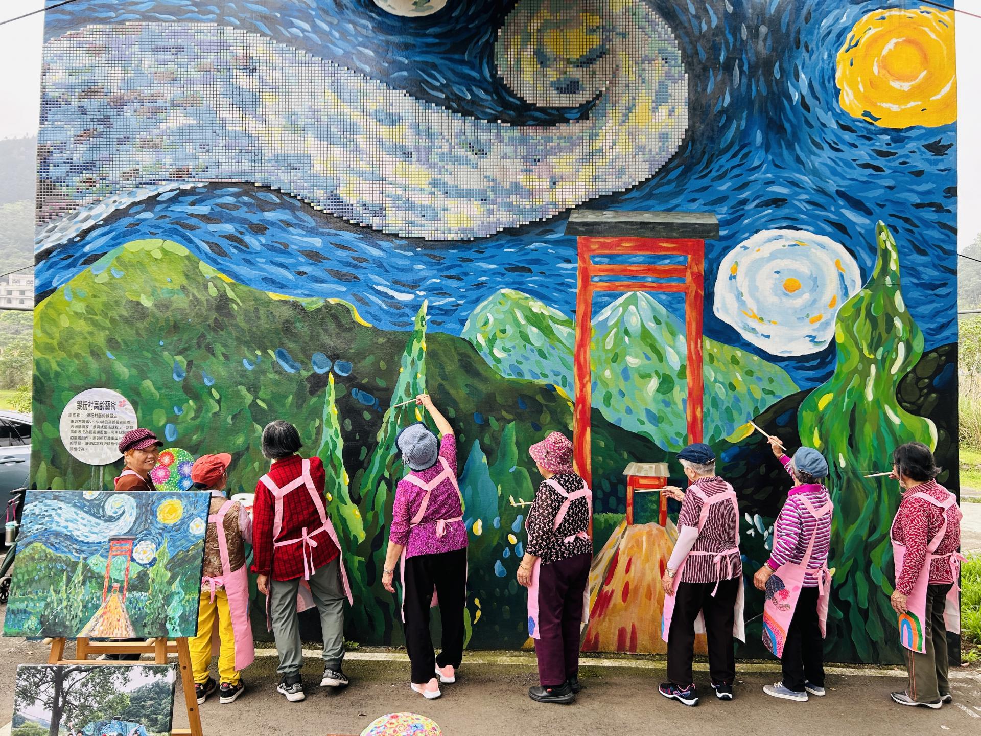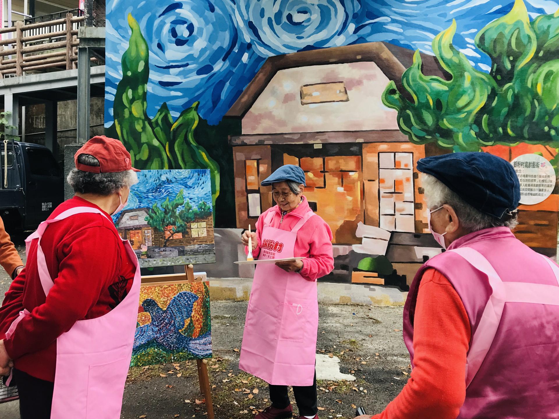 阿公阿婆們共創的藝術作品,現在成為南庄的地景、繪本、文創商品,吸引了許多報導與遊客前來觀賞。長輩們感受到自己的創作被看見,不僅變得更加健康有自信,更是經由呼應大眾熟知風格的畫作,找到與中青世代對話的共同語言。這些創作資源,又進一步成為文化傳承的媒介,帶進小學說故事、成為導覽旅行的亮點,縫補起地方文化的斷層。對於劉英華來說,藝術從來就不是目的,而是連結起世代對話的媒介,他也期待有一天能攜手長輩走進城市的展場,讓更多青年藉由展覽認識到偏鄉高齡人口老化的問題,引動更多「頑」心注入,引動獨具創意的樂齡新可能。