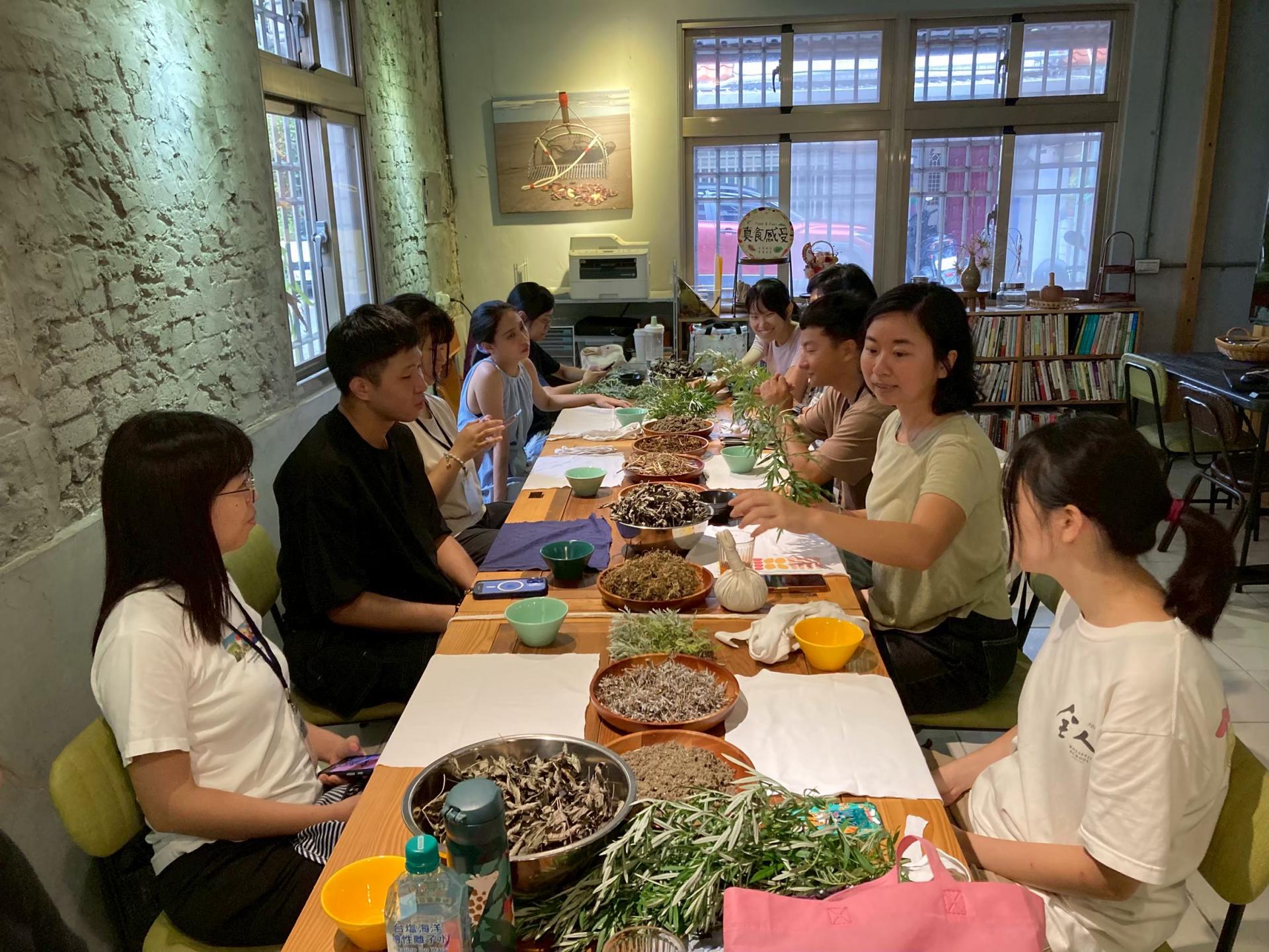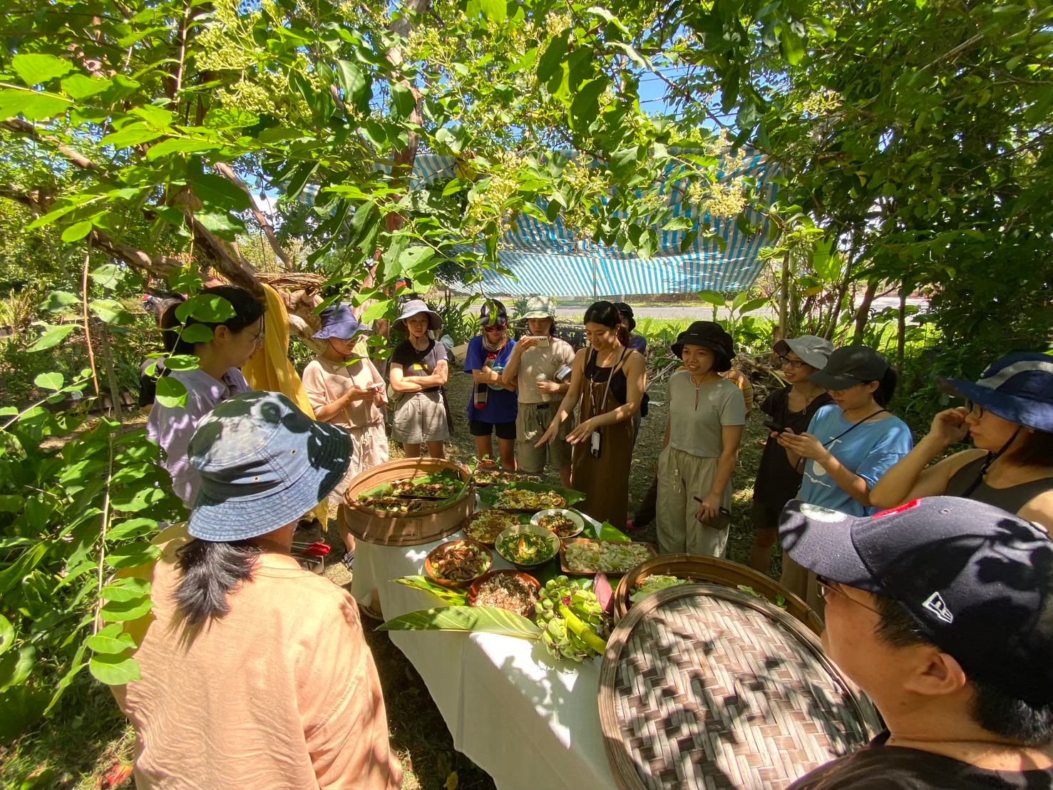 面對越來越多想走入地方的青年,真食感受將過往調查的自然採集路線整理、繪製成地圖。「如果失去地圖這樣的辨識系統,就很容易看不到農村裡的結構,理解上也會變得比較零碎。」黃姿綺說。這些地圖將植物的自然生長環境、農友的農場與地方商店串連,是近年真食感受培力青年的重要工具。不只是青年,真食感受也嘗試與女性族群建立連結。在承接地方辦桌(pān-toh)的外燴服務時,常引起社區阿姨們的好奇,進而建立起深厚的社群關係。團隊中最年長、資深的月真阿嬤,成為出餐、參與市集與帶領課程的重要支柱。有時遇到家族祭祀時節,真食感受便會跟隨月真阿嬤走入家庭,記錄傳統飲食與手作技藝,並帶領實作學員親身體驗。