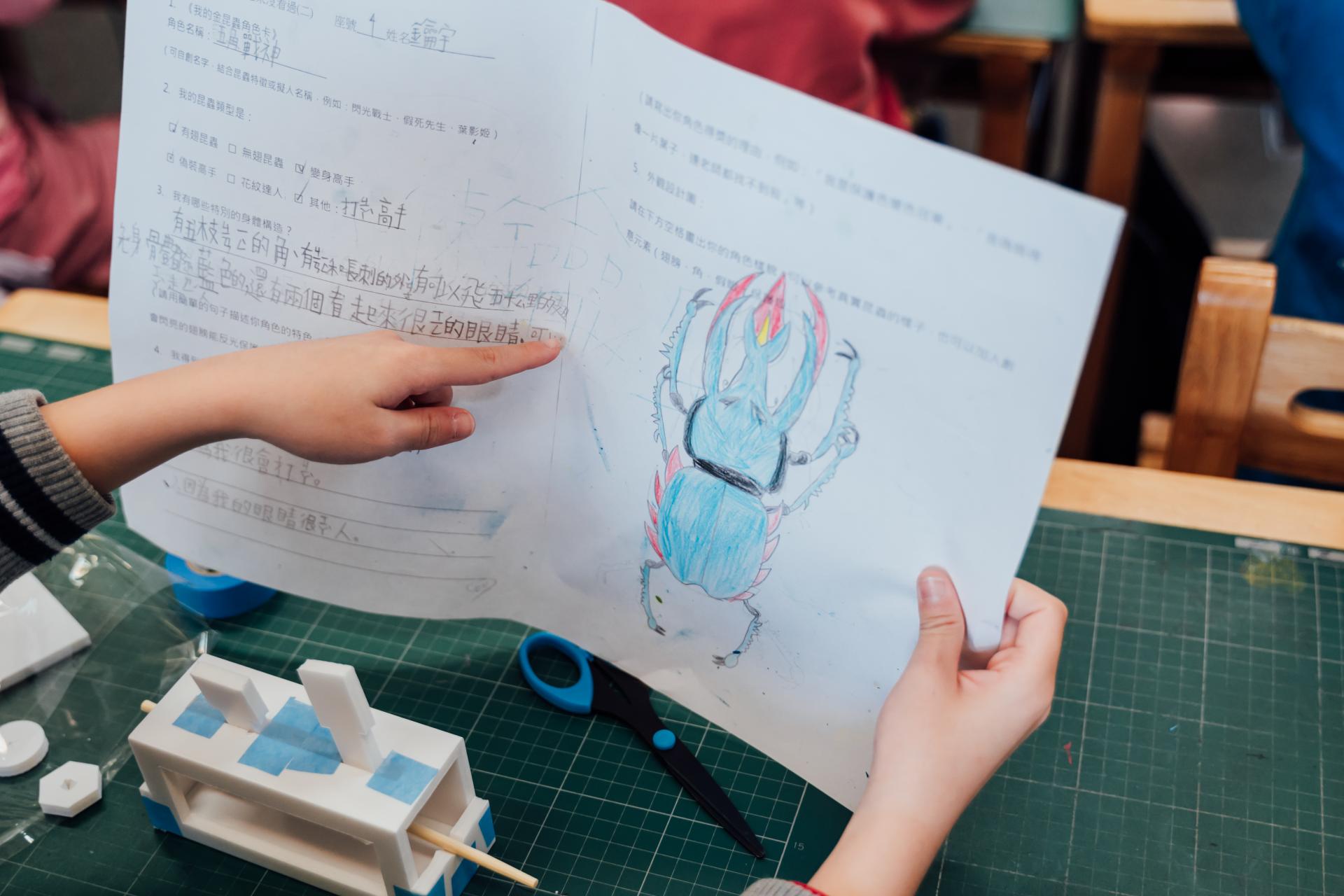 這套機制真正可貴的地方,在於它影響的並不只是課堂當下,也逐步改變了學校與學生回應學習的方式。陳育淳輔導員指出:「這次觀課的班級正好就是一個清楚的例子,因為學校在上學期已先導入自然科的昆蟲教育,藝術家在與學校媒合後,就先提供評量與學習單,讓教師能提早鋪墊課程脈絡。」班導師莊詒婷也分享:「考量學生課程進度,我們有重新調整學習單內容,並安排合適的參考讀本,幫助學生建立必要的背景知識。」也因此,藝術家進入教室時,課程並不是憑空插入,而是能順著孩子既有的學習經驗往前推進。