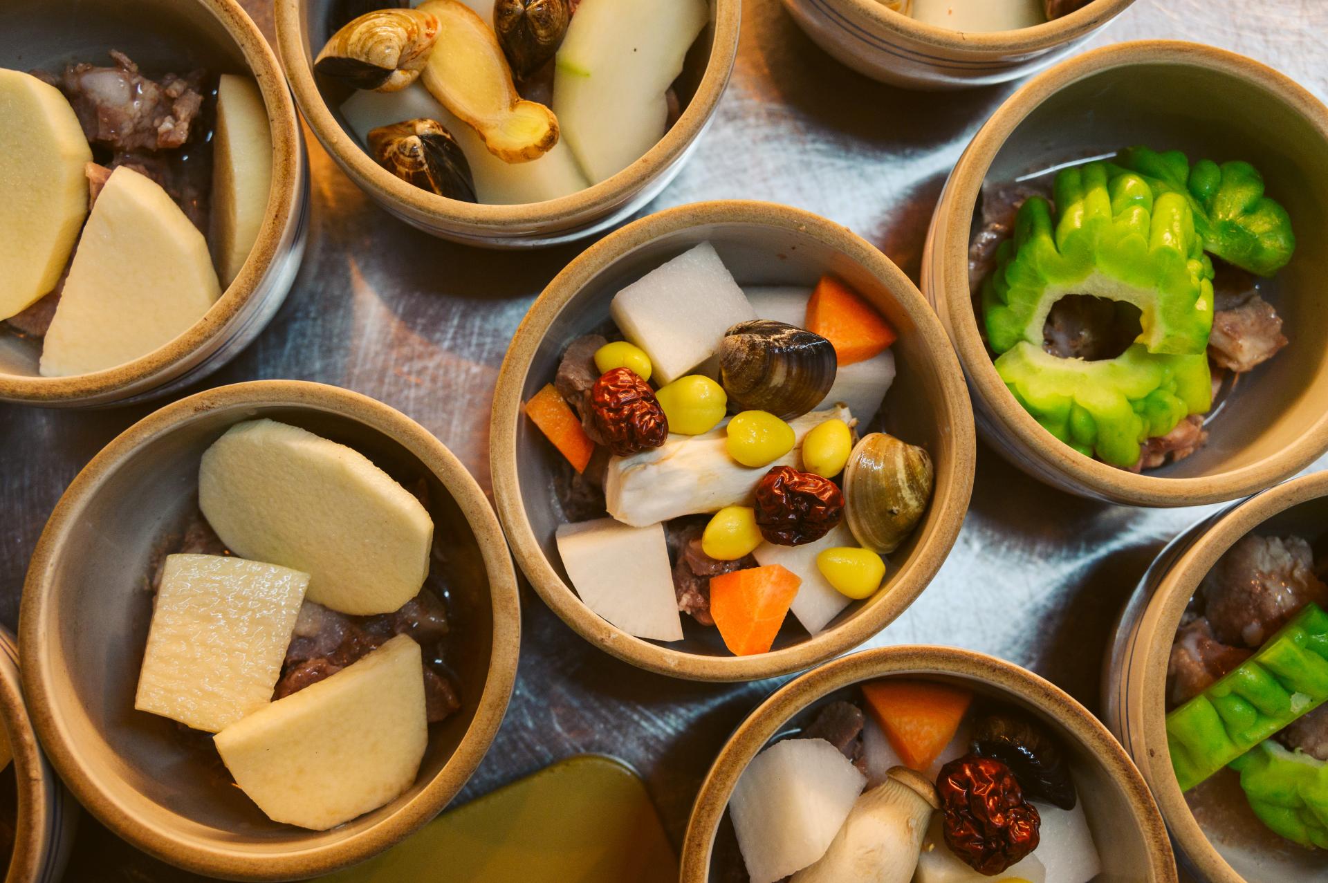 這些燉品店裡大多會提供十幾種的湯品,像是經典的香菇雞湯與蘿蔔排骨,滋補的人蔘雞湯、藥燉排骨與許多季節限定的時令湯品。點餐時不僅隨著食慾和心情挑選,也會根據當時的身體狀態做出選擇。儘管燉品的食補特性較低,但在漢人的飲食文化中認為可食之物都有著影響人體的特性,感冒或上火時都需要注意食材的熱寒屬性。