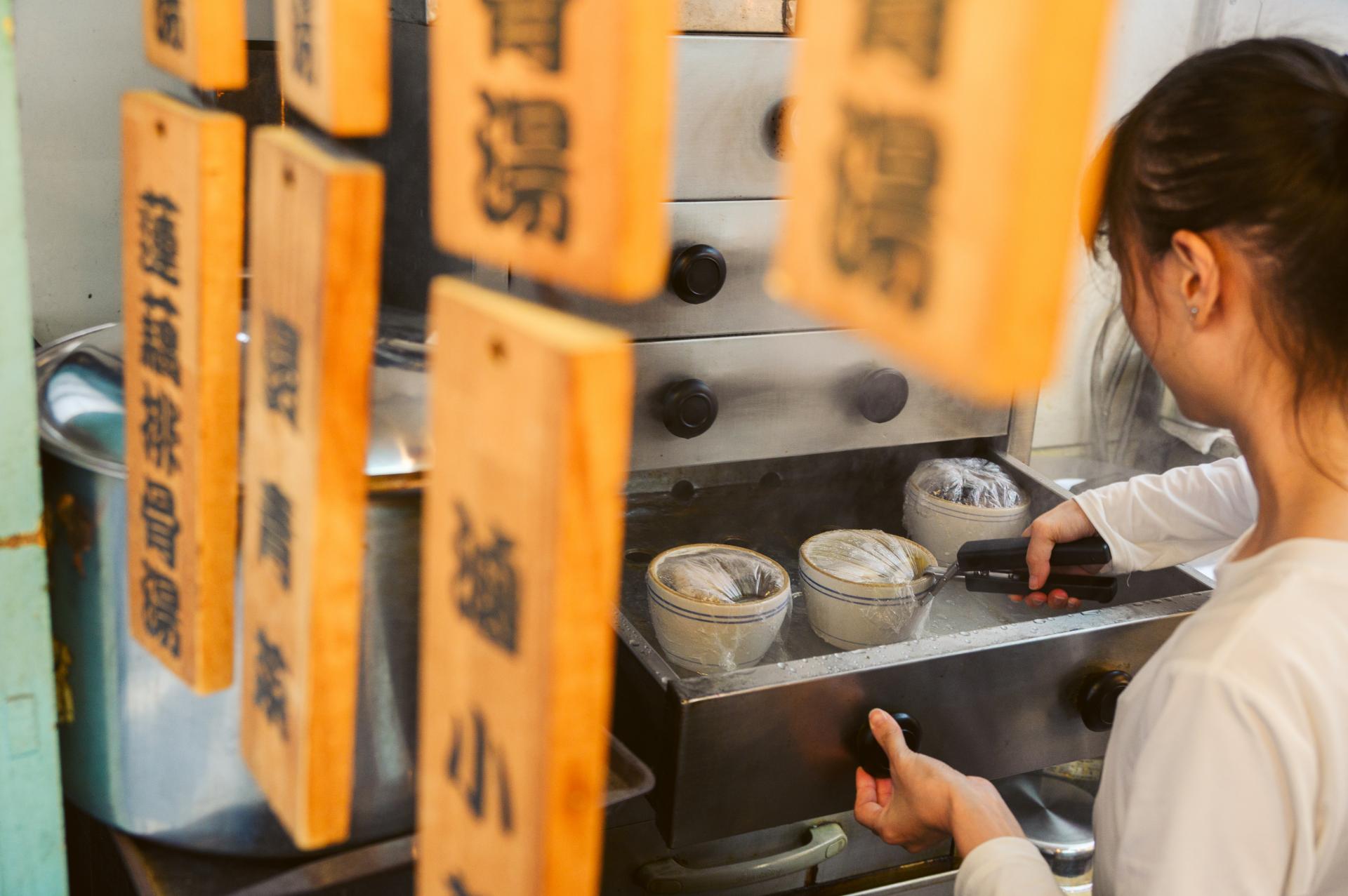 冬天的新竹常是灰白的顏色,街道上漫著朦朧的細雨及薄霧。勝利路上的彭記燉品一早就開始備料,傳出陣陣醇香的熱氣。料理台上整齊擺著燉盅,老闆將雞腿、排骨與配料放入,少許調味後放入蒸箱,經由高溫的蒸汽汲取食材的鮮美,成就一碗碗濃醇的燉湯。