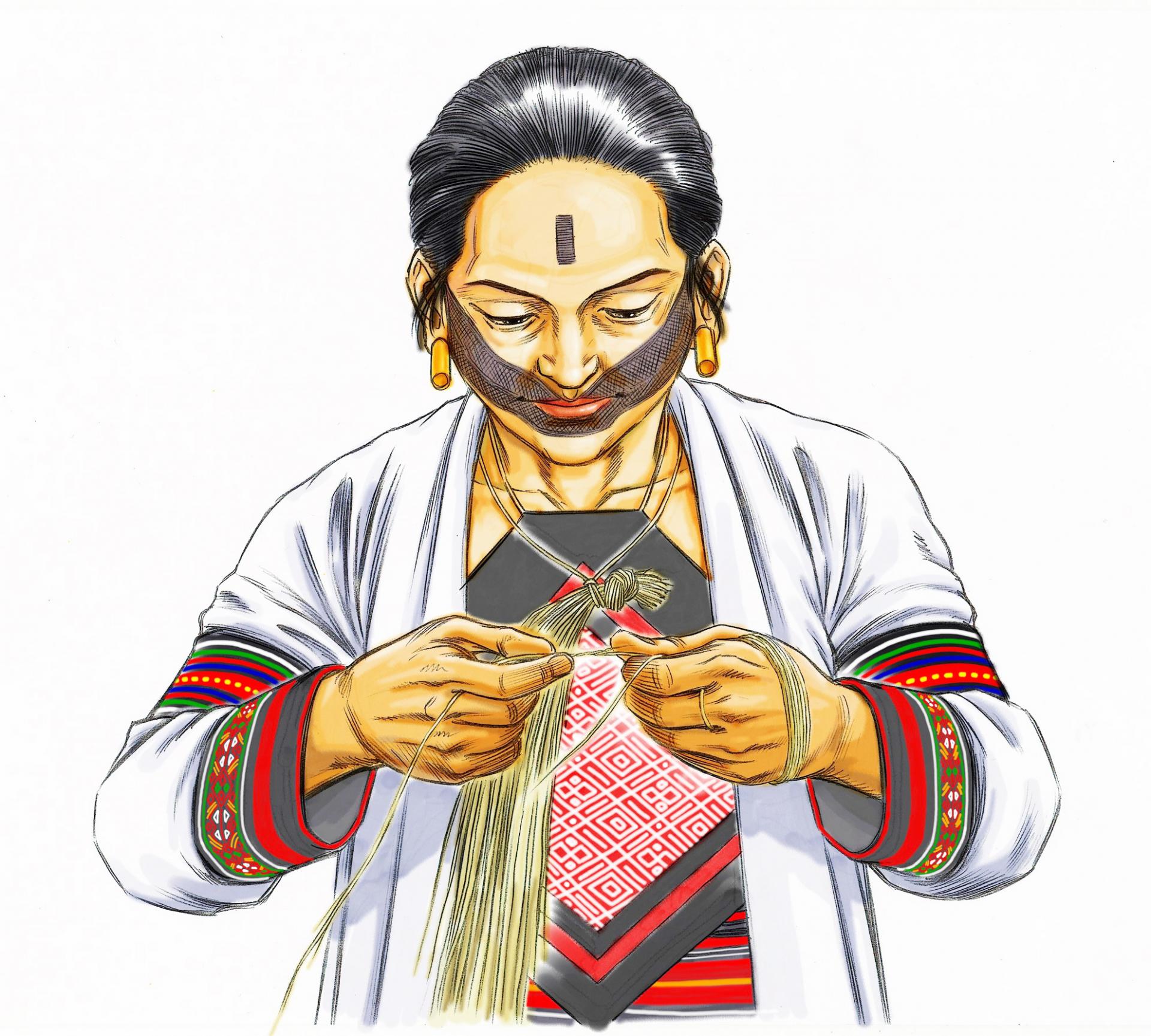 苧麻,是泰雅族人織布的重要原料,尤瑪老師決定從復育苧麻田開始,從種植、採收苧麻、製線、染色、織布等,經過幾十道工序才能完成傳統染織。「你要怎麼照顧苧麻、把纖維變成線,怎麼運用大自然的材料染色,織成一塊布之後,你還必須接受部落裡的區域制度,做出每條河流域特有的服裝樣貌,包含圖案組成和位置、穿戴和儀式等等……」語畢,老師不禁笑說很複雜吧?要再現染織工藝可不容易,也因為每項工序如此繁雜,織女們需要具備一定的植栽、染色、織造、服飾文化等知識和能力,才能織出一件件美麗衣裳。