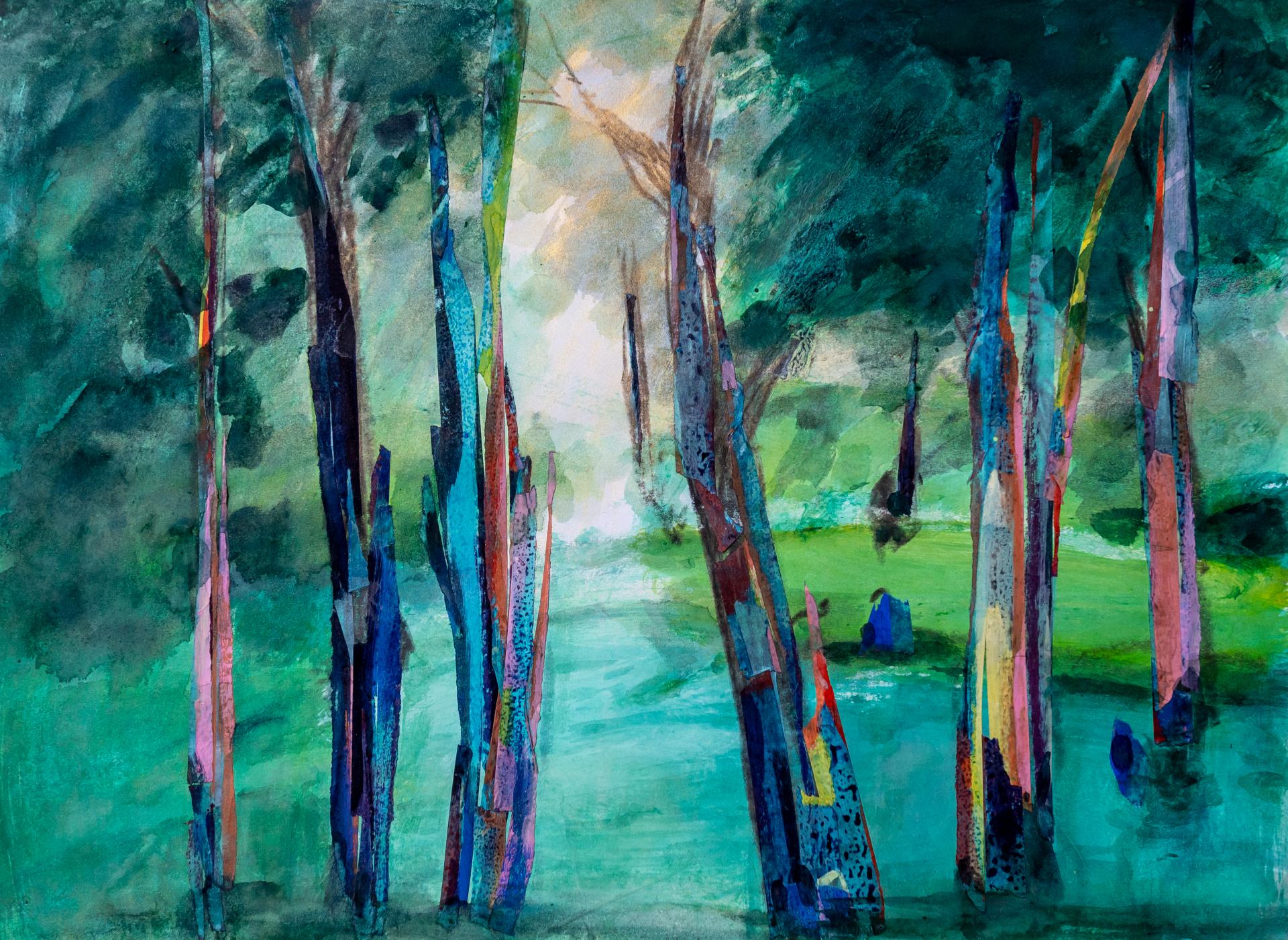藝術家與教育工作者這兩種身分,也為呂老師帶來了新的觀點與創作靈感。不像一般的藝術家關起門來創作,近二十年來,呂老師除了擔任教育部國小與國中藝術教科書的審查委員、補助計畫或美術比賽的評審,也參與許多藝術學會與協會,不斷接收外界新知,為藝術創作注入新活水。有生之年,呂老師期許自己猶如人間天使,用藝術召喚愛,「透過藝術捕捉瑰麗片刻,透過創作實踐性靈修養,轉化所感、所思、所視、所言、所聽、所行之整體節奏。藝術就是靈性視野,伴隨成長過程存在的養分,來省思自我。」老師的創作靈感往往來自生活,每次畫圖前會從構思小圖開始向外延伸,再擴充、深化、組織畫作,確立內容與主題。她形容繪畫就如同鏡子,藉由審視自己的內心,更關心自己與他人,再以色彩表現出情感。