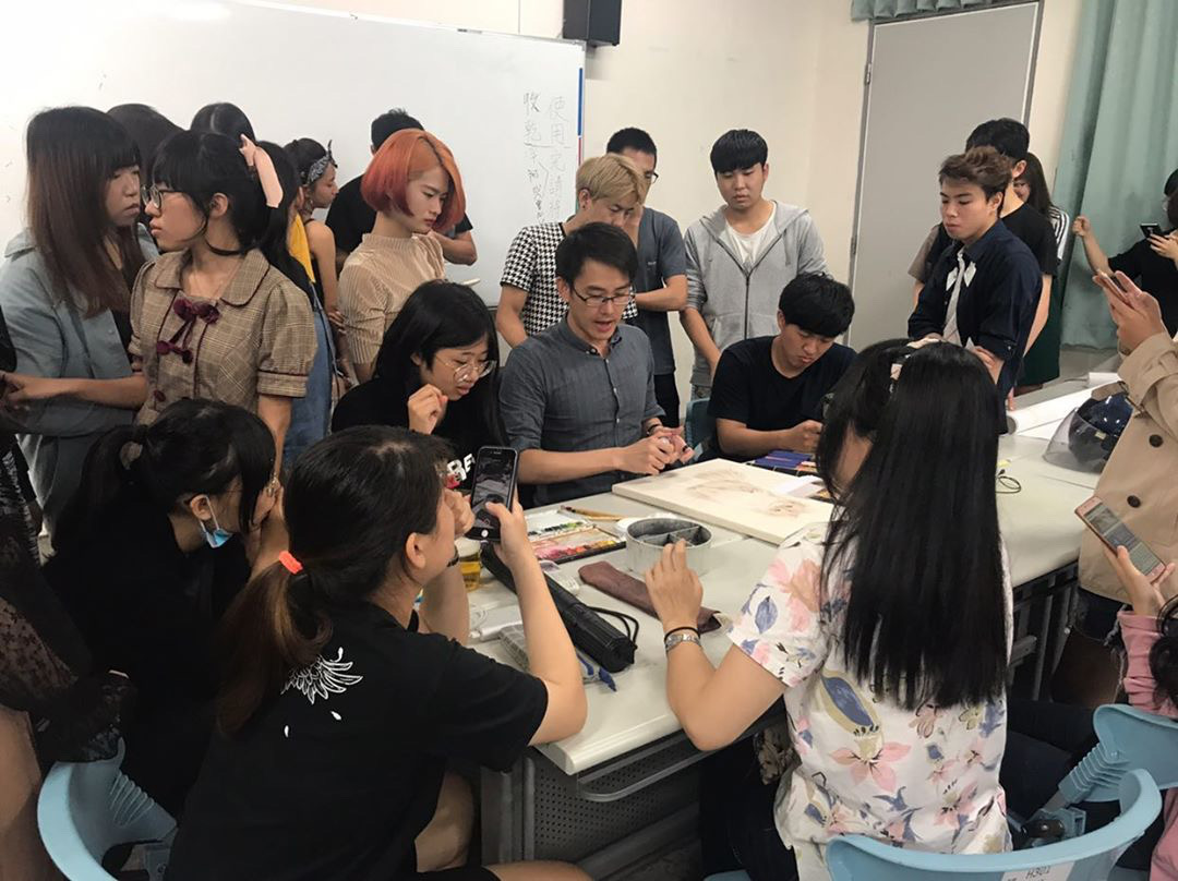 「我們這個時代的老師,尤其教藝術的,眼界和包容度都要盡可能地拉寬跟拉大。因為這個世代已經沒有很明確的標準,告訴你這樣做就一定會怎樣,沒辦法下這樣的結論。」生長在 1980 年代的吳宥鋅老師,在求學過程中就經歷了好幾次價值觀的變化。也許因為當時大環境正在改變,像是教師考試門檻提高、大眾開始重視藝術市場等等;又或許正值世代交替,老師的不同觀念或多或少對他產生影響……。他舉例,以前大家看重比賽,相信這是通往成功的一條道路,但後來藝術界開始著重在其他發展面向,比賽好像又沒有那麼重要了。然而,吳老師現在被認同的某些觀點,在過去其實也曾被否定。因為這樣的經驗,讓他在成為老師以後仍不時提醒自己,盡量提供學生「建議」,而非「意見」,因為藝術真的沒有標準答案。在整個社會環境氛圍下,學生往往在離開校園、甚至選填大學科系之前就要開始思考未來的出路,那麼該如何培養一技之長,讓自己踏入社會以後能夠養活自己呢?面對這樣徬徨的學生,吳老師提出兩點建議:一是知道自己要的是什麼,再來是隨時保持變動的靈活度,也要聽得進別人的聲音。「長輩說的有一定的道理,我們要聽,但不是盲從。」對於外界的聲音不一定要全盤接收,而是學著從眾多雜音中篩選出自己認同的部分;他也與學生共勉,在人生路上不斷地尋找自己要什麼、不斷地微調,相信最終會確立自己的方向。在吳老師的眼中,所謂的因材施教應該是理解學生們在焦慮什麼,面臨什麼問題,需要老師給予什麼樣的幫助,對學生的所思所想或作為,再多一些些包容。老師也可以向年輕人學習,吸收新的潮流知識;語畢,和學生就像朋友般相處的他也忍不住笑說,不知道再過幾年,和學生之間會不會出現代溝。